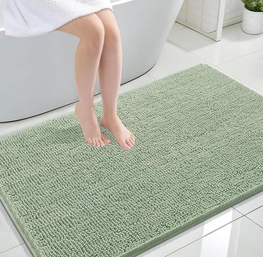 OLANLY Extra Soft Absorbent Chenille Bathroom Rug – Sage Green (47x32)